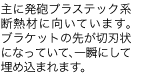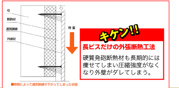 主に繊維系断熱材に向いています。 ビスが貫通してないため、熱橋対策は完璧。 ネジ式のため断熱材の厚みにも自由に対応。 (屋根用もあります)